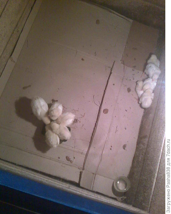 Молодняк обычно сидит по сараям на сене (сараи не тёмные, с застекленными окнами), до высадки рассады — гуляем в теплицах, дощипываем случайные сорняки. А в совсем маленьком возрасте мне пока лень их туда-сюда таскать, сидим в ящиках.