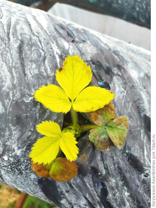 Обычно при азотном голодании листья растений теряют яркость окраски, становятся бледными, а порой и желтыми, не вырастают до обычных размеров, рано отмирают. Листья земляники тоже изменяются: у них желтеют все ткани листовой пластинки (кроме тех, что располагаются рядом с жилками), жилки остаются зелеными.