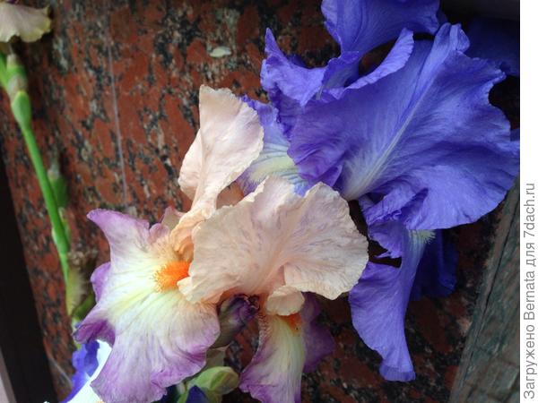 Ирис бородатый 'Louvios' радует глаз трехцветной окраской: нижние доли около цветника...