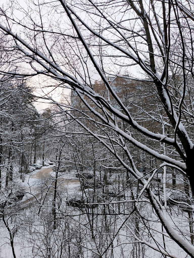 Старый клён заснеженный у нашего окна