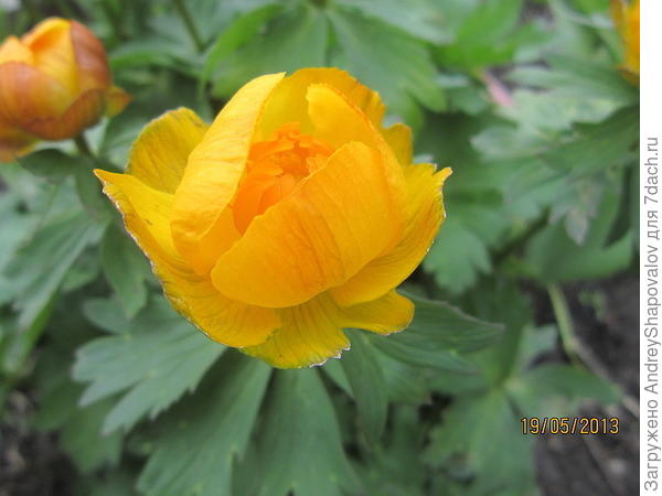 Есть сорта купальницы Ледебура, например, 'Голиаф' – цветки до 7 см в диаметре, чашелистики темно-оранжевые, нектарники светло-оранжевые.