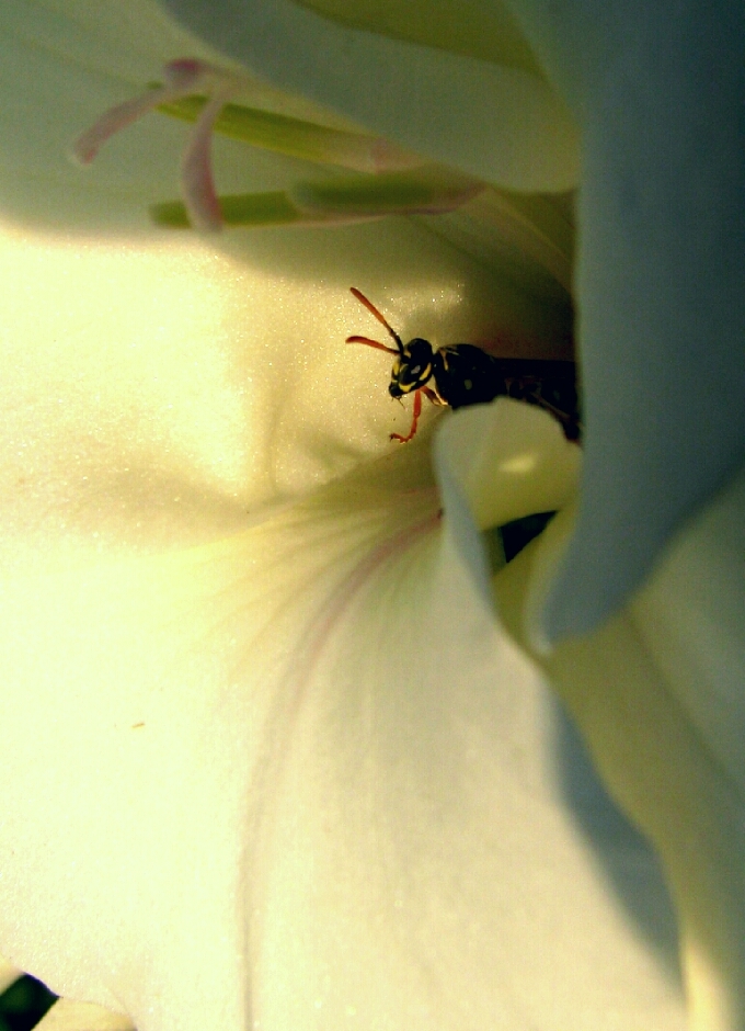 Что ещё нужно уставшей пчеле? Посидеть, отдохнуть и дальше лететь.