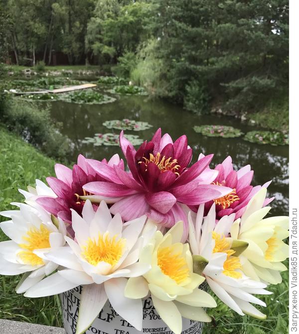 Это не скромный, а роскошный букет, те-то были попроще — просто белые кувшинки