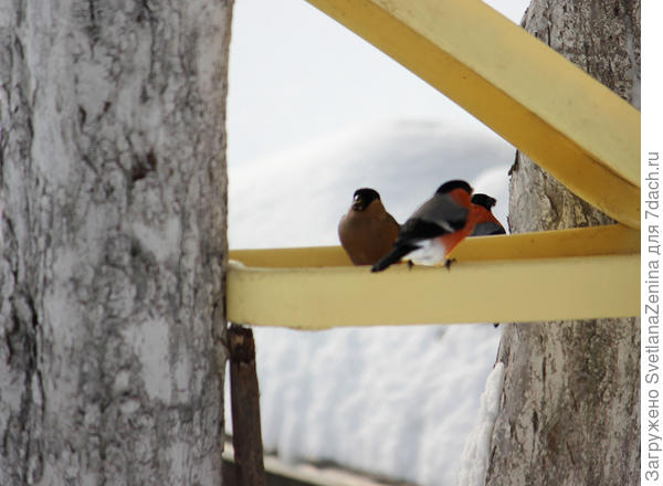 Со снегирями у меня полный облом… самый редкий и желанный гость. Не могу их ни чем прикормить. Хотя чирикают они где -то поблизости))