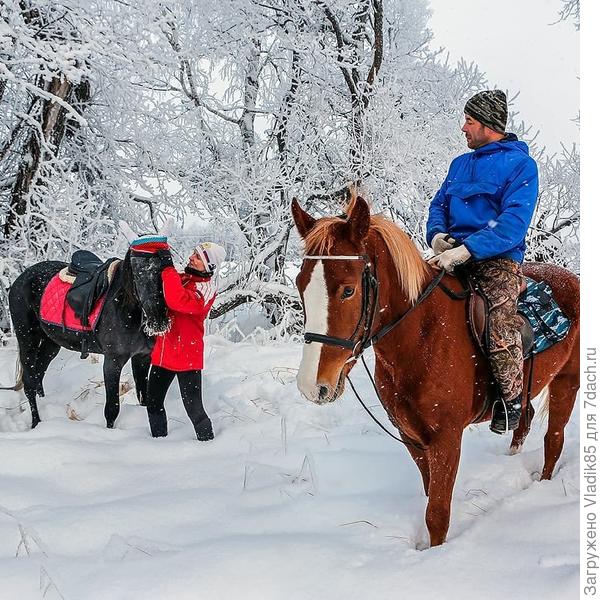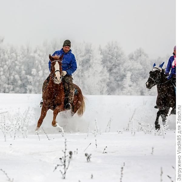 Шикарно! Как же я люблю верхом, в морозец, кентерком по снегу! По такому снегу одно удовольствие покататься верхом.