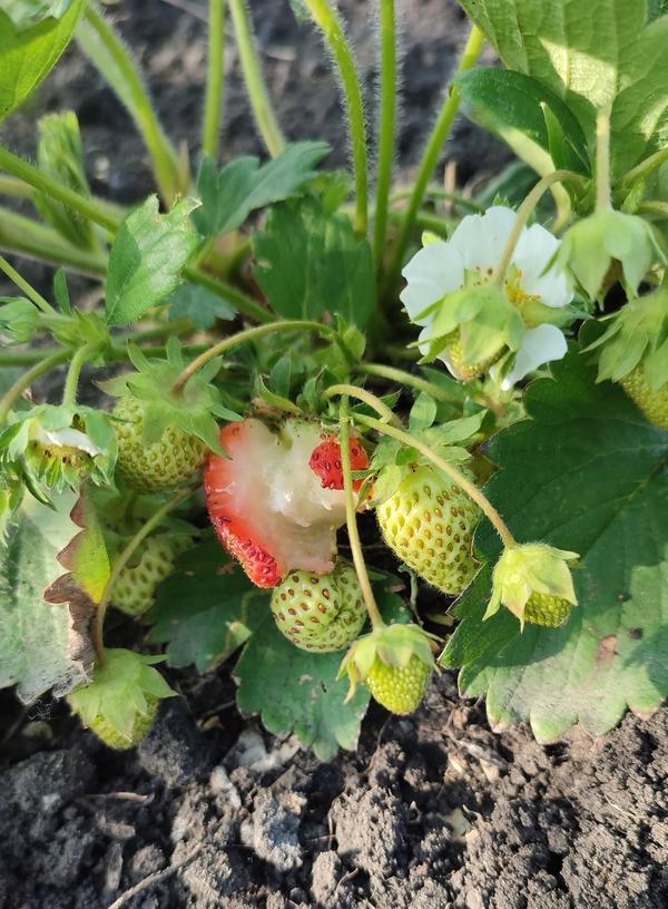 Кто знает, помогите решить проблему. Ягоды клубники подгрызает черный жучок длиной 3-5 мм. В результате ягода перестает расти и сохнет.