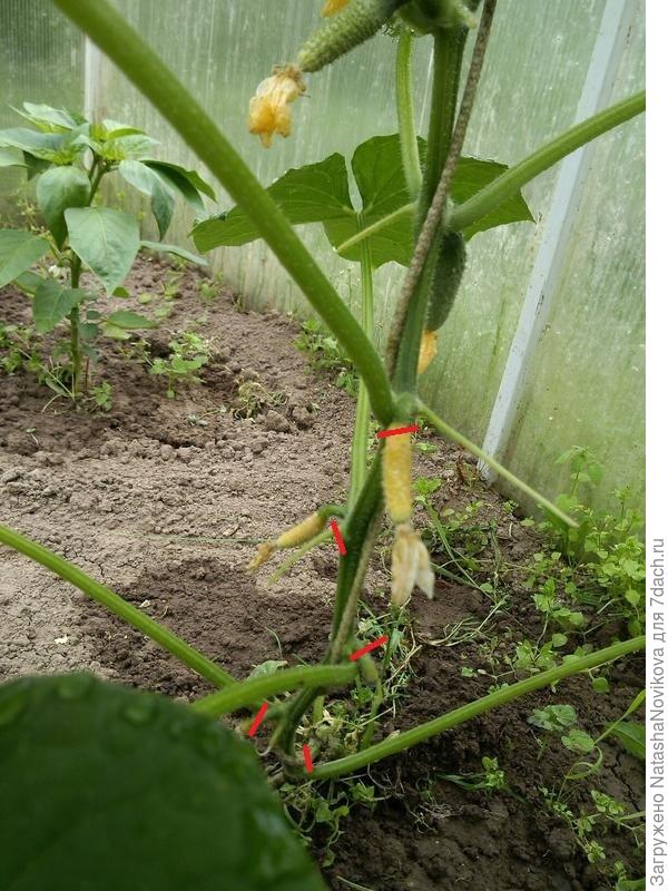 Здравствуйте! Когда плеть огурца дорастает до верха теплицы, некоторые тепличники рекомендуют приспускать лиану на землю, укладывать её в виде круга, обрезая все листья, и присыпать приспущенный ствол землёй для наращивания дополнительных корней....