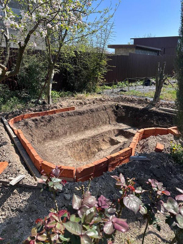Выкопал пруд 4,7на 3,5 метров, глубина в два уровня 70 см и 100 см, общая 170 см, пруд на склоне, придётся делать подпорную стенку 30 см.