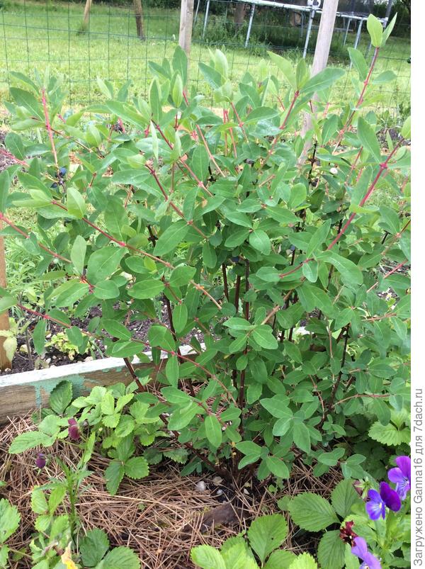 Следующим пунктом будет ( вернее- есть) голубика. Тут прийдется подождать до осени. Культура более капризная, чем жимолость, по части климата и почвы. Пока растёт неплохо, перезимовала отлично, признаков болезни нет, почву мне пока удаётся удерживать в кислом состоянии. Посмотрим что получится.