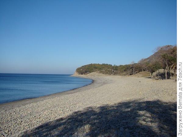 Бухта — огромная, многокилометровая «подкова», берег чисто песчаный, глубина возрастает очень постепенно, что важно для отдыхающих с детьми. Им есть где поплескаться на мелководье, пока взрослые плавают на глубине.