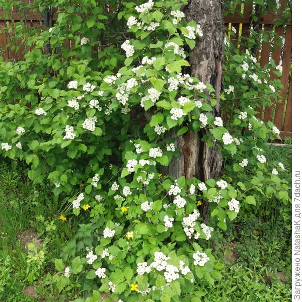 Во-вторых, он невероятно сильнорослый! За сезон ветви в длину нарастают до метра! Я его режу два раза за год: летом, когда отрастают ветки, и потом уже зимой (без листьев скелет дерева лучше виден и удобнее прореживать загущающие). Надо сказать, даже такая НЕ щадящая обрезка ничего страшного ему не делает. Похоже, он даже не особо замечает ее… :) Высоту мне кое-как удается сдерживать на уровне приблизительно 4 метров. Но зато он и вширь распластался на такое же расстояние. И издалека напоминает шар.