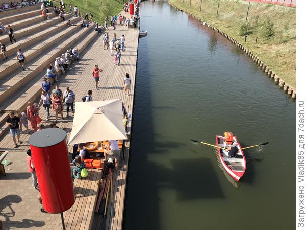 В общем, набережная дли-и-и-нная, красивая и всё-таки… пустая. (На фото единственный человек — это моя коллега меня догоняет :) ). Пока я обежала всю набережную и мостики, она не спеша покурила на лавочке. :)