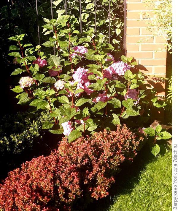 В этом году периодически идут дожди, поэтому гортензиям — рай. Все у них хорошо.