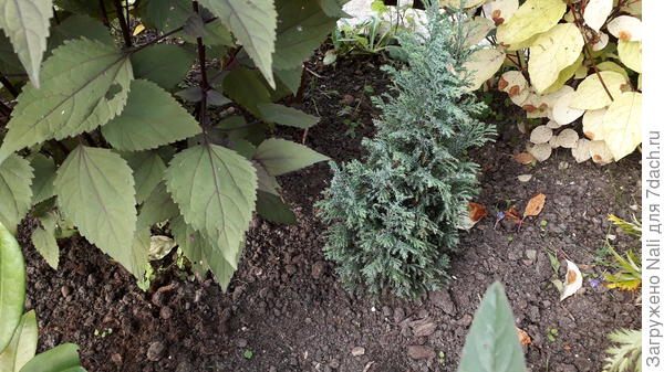 А меня не уголок, а почти половина участка хвойно-декоративная. Так уж сложилось, что на другой стороне парник, грядка, теплица, горшечно-контейнерный огород и все остальное ягодно-декоративное. Хотя, за горкой, липой и абрикосом тоже есть три небольшие грядочки…