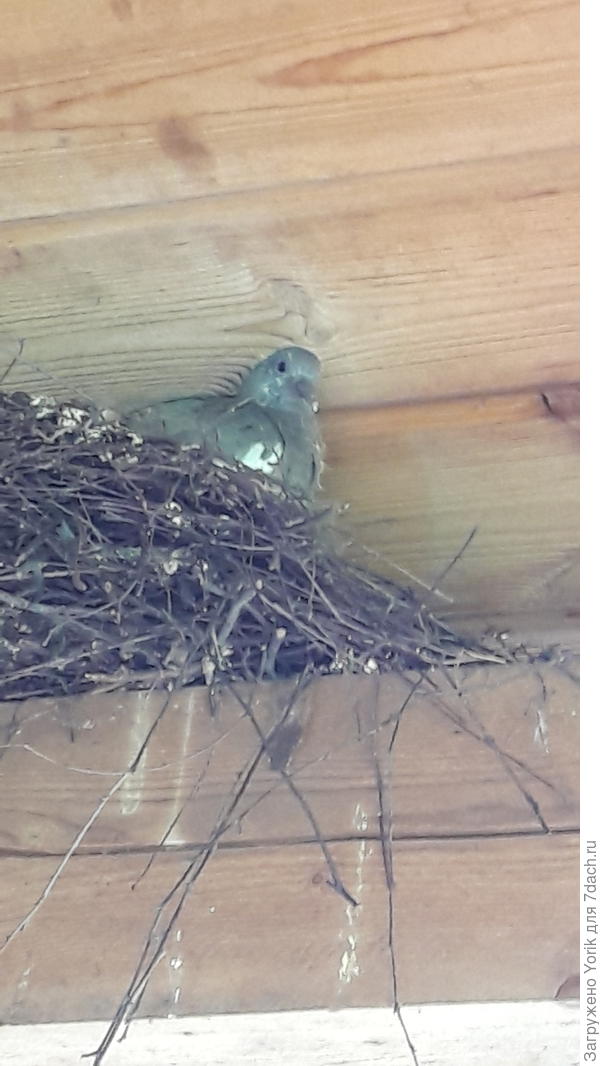Второй год под крышей террасы живет семья горлиц. В прошлом году вывели и вырастили птенцов. В августе улетели. В этом году все повторяется. На удивление тихие птенцы. Молчуны.