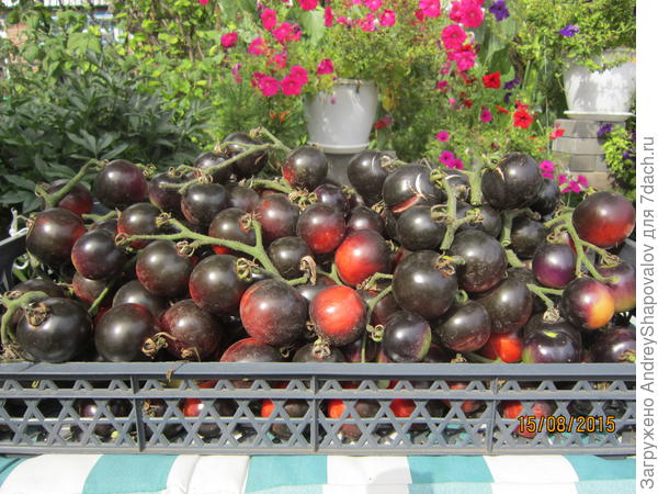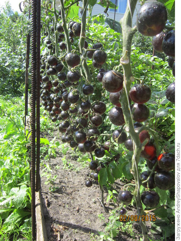 куст был высотой более 2-х метров, помидоры тёмно тёмно бордовые, почти коричневые, но их было до неприличия мало, в кисти не более трёх,