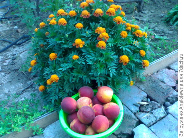 На упаковочке было написано, что это чрезвычайно компактная и выровненная смесь с обильным цветением, высотой 15-20 см, ранние и обильные! Как раз их высота мне больше всего и понравилась.Очень низкорослые, но не просто ровно растущие вверх, а наоборот, как-то разрастающиеся в стороны, как будто стелющиеся! Очень здорово смотрятся! Цветочки мелкие, махровые оранжевые и желтые. Вообще Бархатцы очень неприхотливые однолетники, цветущие до самых заморозков. Том Тумб не исключение! Цвели очень долго!
