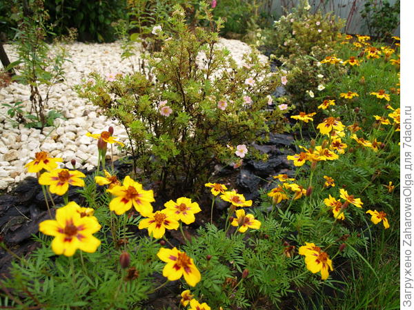В этом году решила посадить Бархатцы из подарочного набора от фирмы Русский огород. Точное и очень интересное название — Бархатцы французские Том Тумб! Овощные культуры из этого набора сажать было поздно, а вот Бархатцы как раз! В пачке было несколько семян, и я их растянула аж на 2 клумбы! Сажала практически через 5-6 см по одному семечку, но когда они разрослись, даже не скажешь, что их было так мало!