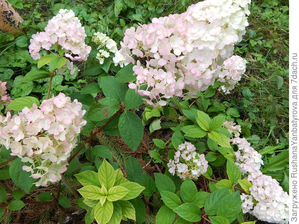 Уход заключался в регулярном поливе и подкормках травяным настоем с ЭМ-препаратом по мульче. Большие сомнения вызывала зимостойкость гортензии, но зима 2020 г. выдалась теплой, и в течение всего лета и осени следующего года она радовала меня своим цветением.