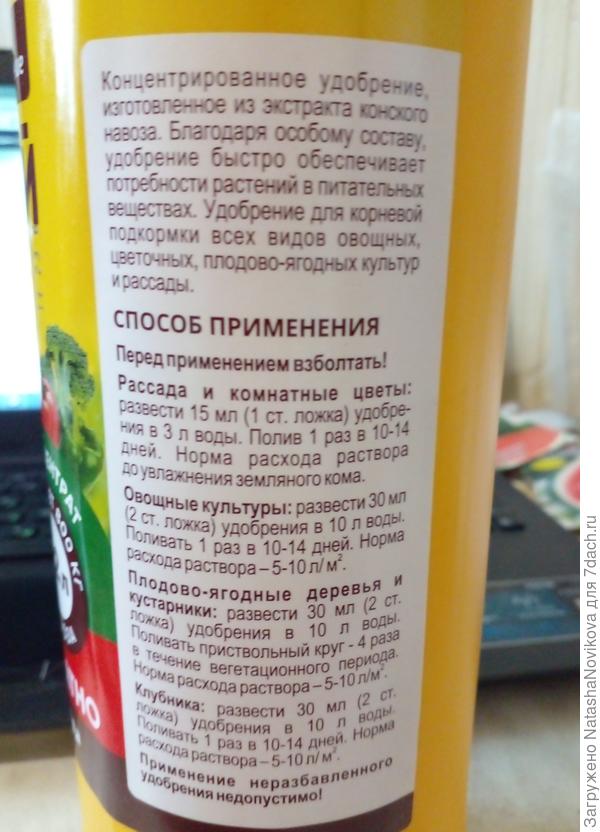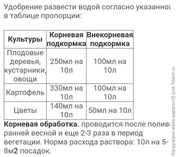 А норма указана, если весь литр развести в 20 литрах воды — на 10-16 кв. м посадок.