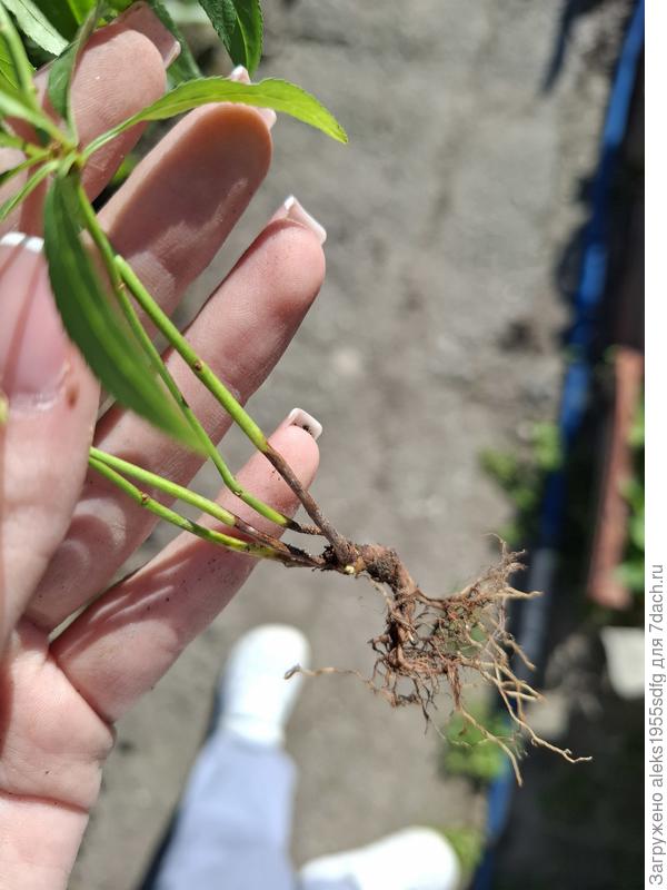 Никакие удобрения саженцам в первые годы не нужны, тем более больным. В воде оставлять с выпреванием тем более нельзя. Высаживаете на постоянку в обычную почву в сад. Никаких смесей. Если у вас сухой участок и почва лëгкая — добавьте побольше глины в посадочную яму, которую в идеале сделать побольше. Полить и ждать новых побегов. Там почки, кстати, идут. Это кустовой персик какой-то.