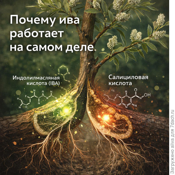 👉 В иве эти вещества работают вместе. IBA — запускает рост. Салициловая кислота — защищает процесс. Получается не просто стимулятор, а полноценная система регенерации. И вот ключевое отличие от химии. В синтетических препаратах чаще всего одно вещество. Причём в агрессивной концентрации. В иве — баланс. Она не «заставляет» растение расти. Она создаёт условия, при которых рост становится естественным. Отсюда и эффект, который замечали ещё деревенские садоводы: