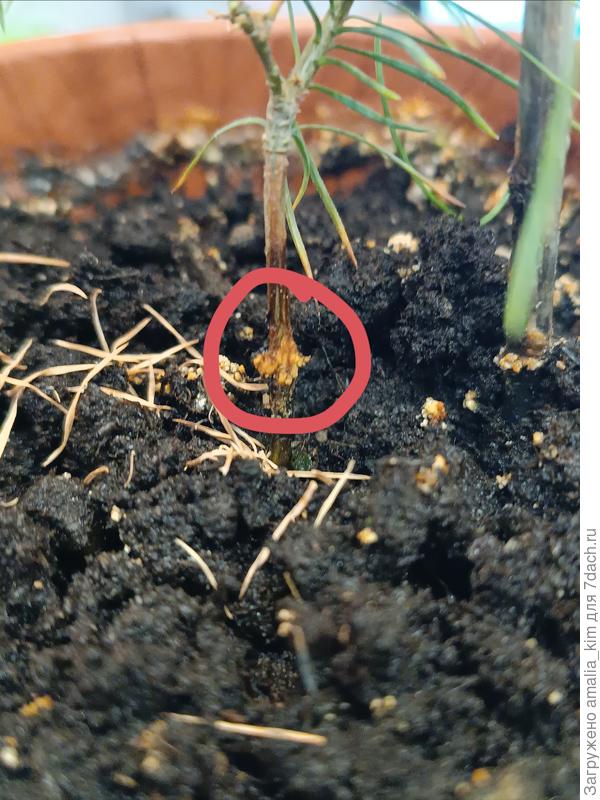 Сосна Веймутова Витхорст посажена этой весной. На одном фото (23 июня) она зелёная, на втором фото (8 июля) стала светлее, и молодые побеги стали рыжие, но мягкие. Скажите, пожалуйста, что с ней не так? При посадке добавляла удобрения...