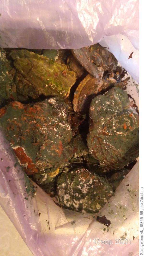 По совету того же Ивана Русских набрал в лесу трутовиков. На одном очень старом и гнилом есть что-то напоминающее спороношение триходермы. Посадил эти «споры» на пропаренную перловку.