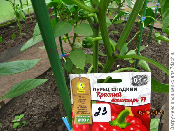 Перец 'Красный богатырь' высадила 4 мая на среднюю грядку в теплице.