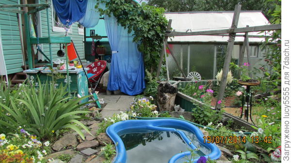 Сбоку от маленького дома, площадка, наверно, поставлю цветы в вазонах, еще не придумала