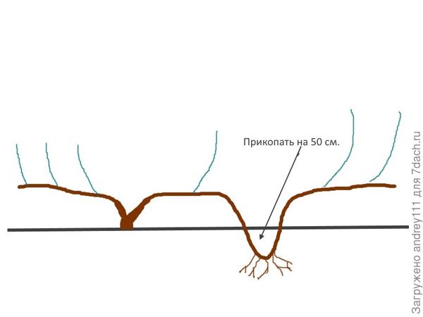 3) Можно одну из длинных лоз укоренить и получить ускоренно новый куст, при этом получить на этой лозе и урожай. Например вот так:
