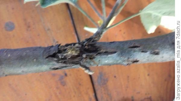 В прошлом году кора сначала потемнела, затем растрескалась,...