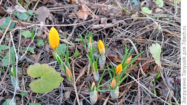 А весна шагает семимильными шагами. Сегодня, пока шла на дачу, видела цветочки мать-и-мачехи. А на даче уже крокусы цветут! Так радостно сразу стало!