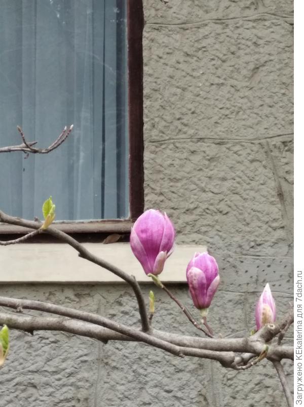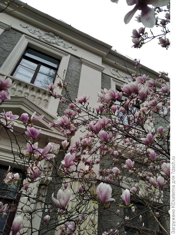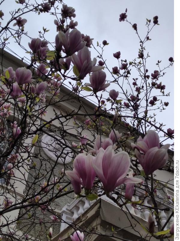 Сегодня сфотографировала магнолию листопадную — одна уже отцветает, а ещё три только бутоны выпускают, ну, будете у нас в течение трёх недель — Ялта, на Пушкинской!