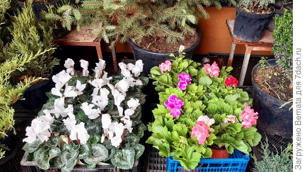 Сегодня у мамы ДР, заскочила на рынок купить цветочек, какой-нибудь… А там уже, смотрю… Красота! Цикламены, примулы, герань…