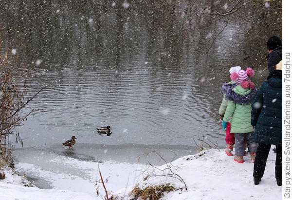 Подплыли, смотрят на нас, ждут. Дедушка с бабушкой нарвали боярышника и стали им кидать — поклевали немного. А я мужа отправила в магазин за хлебом. Так что умные уточки пообедали