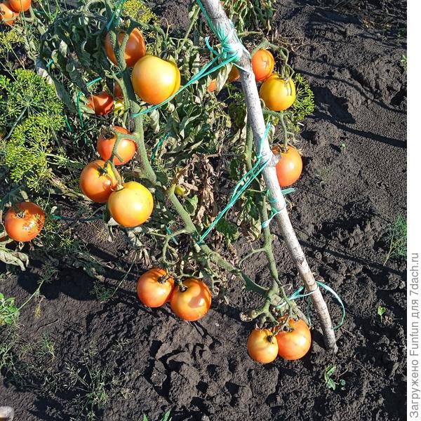 Кентукки бифштекс. На кусту ещё много. Подвязываю постоянно, но периодически кисть надламывается.