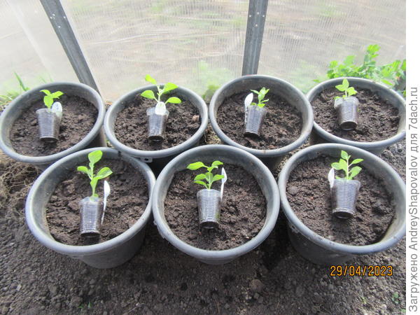 А такими я их привезла в конце мая в теплицу и высадила из 0,5 в 3л горшки.