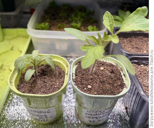 Вот два томата из одного пакета. Маленький Сердцеед для комнатного выращивания.