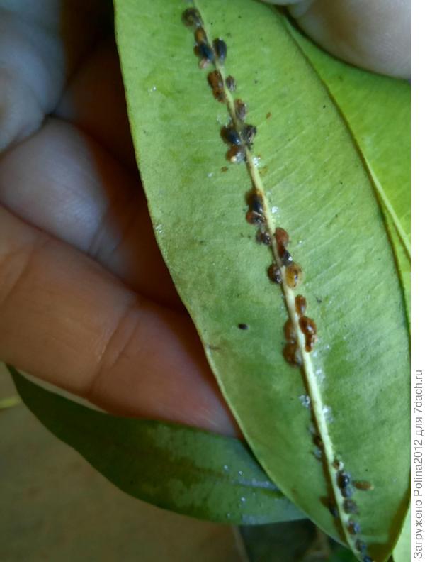 И только дома обнаружила, что все листья и стебли облеплены щитовкой, это просто тихий ужас, как их много.
