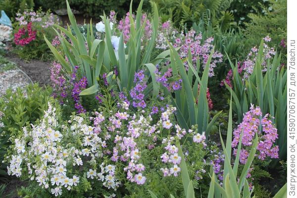 Схизантус в цветнике на террасе. Очень украшает мой мобильный садик-огородик