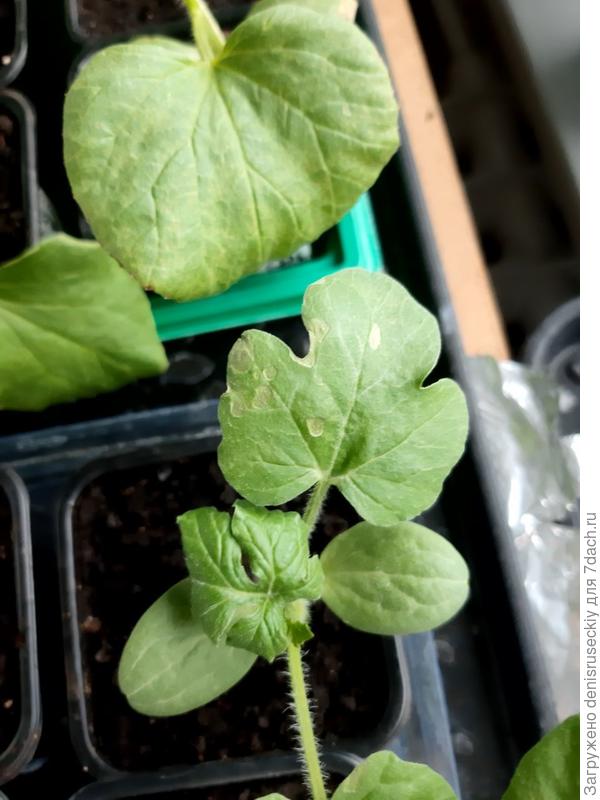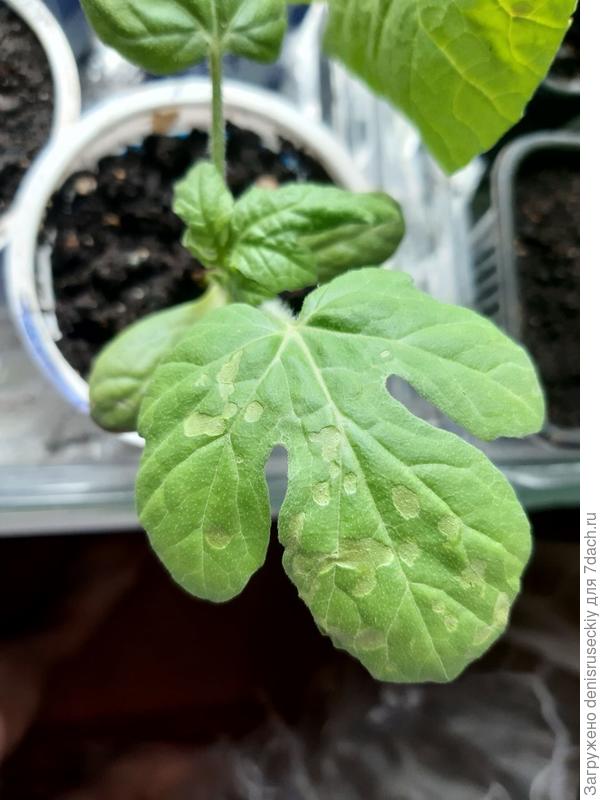 Возможно ли появление пятен на листьях рассады арбуза и дынь в результате солнечного ожога либо перекормки минеральными удобрениями?
