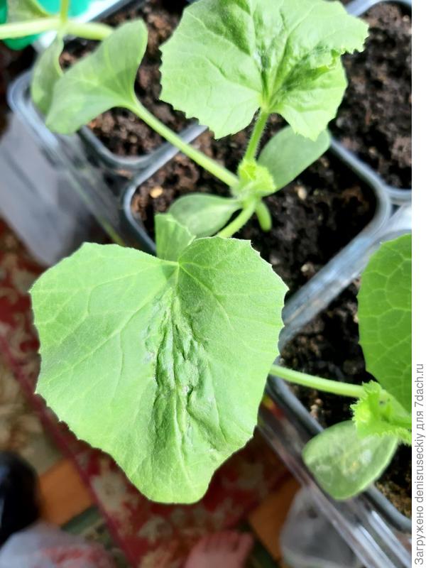 Сегодня это заметил, а подкормил 14 числа с добавлением суспензии хлореллы. Еще подсыхают листья, кончики, незначительно, правда. И странная деформация листа на дыне. Такое не на всех. 16 числа обработал луной экспириенс, 17 числа обработал эпином (1 мл на 5 литров воды, как по инструкции), далее пролил хорошенько дрожжами, настаивал 2 часа 100 г на 10 литров. Изначально, когда обнаружил, было как на первых 4-х фото, остальное — сегодняшний результат, на 18.05, стало еще хуже. Думаю, что в этом году с бахчевыми я пролетел. Благодарю заранее тех, кто откликнется на мой вопрос.
