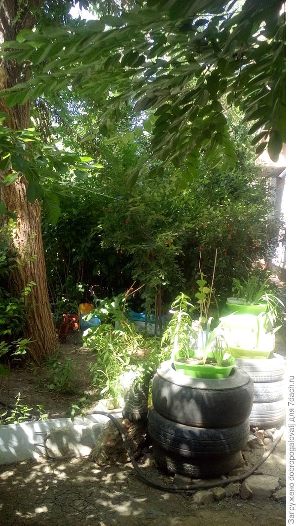 А вот от шин в Вашем садике я бы избавилась, они не украшают, а наоборот… Растений не видно, а видно только шины