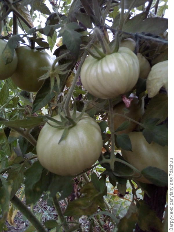 Этот томат склонен к образованию «зеленых плечей». Но это в том году еще мало плодов созрело, а те, что созрели, те без «плечей».