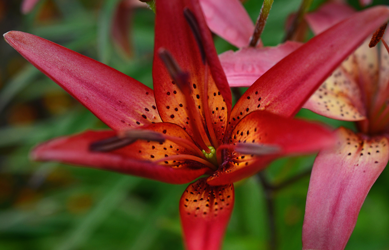 Лилия Виринея — азиатский гибрид. В рыхлом кистевидном соцветии 9-15 звездчатых цветков, обращенных вверх. Окраска двуцветная: концы карминово-розовые, серединка светло-оранжевая с многочисленными темно-пурпурными пятнышками. Диаметр цветка – 14 см. Высота – 100 см. Бульбоносность умеренная. Цветет с первой декады июля.