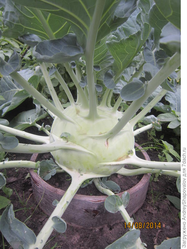 В этом году впервые выращивала капусту кольраби, всего четыре растения — на пробу себе и соседям)). К сожалению, часть кочана, не использованная сразу и отправленная в пакетике в овощной отдел холодильника, очень быстро начала портиться.
