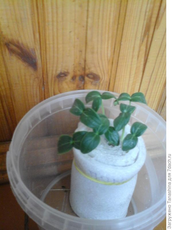 Пятый кустик. Еще веселее. Этот куст оказался с гермафродитными цветами. Вот такие круглые полосатые-волосатые арбузики завязываются на этом кусте.