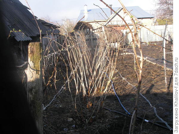Я по краям малинника ставлю 2 столбика, и где-то посередине третий, и красивый канат протягиваю вдоль всего малинника. Точнее 2 каната параллельно. К ним малину и привязываю.