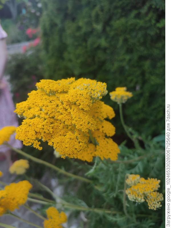 Тысячелистник. Но желтая ли форма обыкновенного или т. таволговый — неясно, нужен общий вид куста в масштабе и четкие фото листьев.